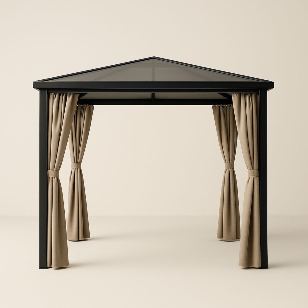 Gazebo in Alluminio con Tetto in Policarbonato e Tende in Poliestere