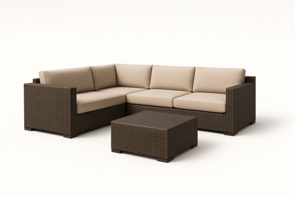 Set Divano Angolare in Rattan Sintetico Marrone con Cuscini Beige